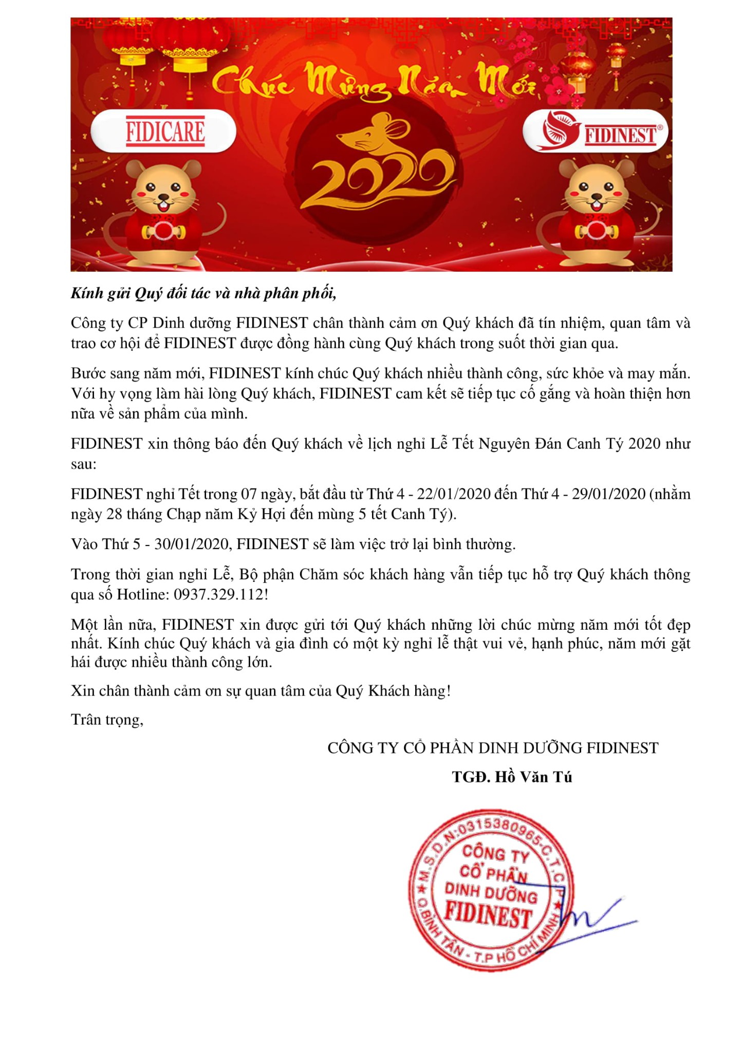 Thông báo nghỉ Tết Nguyên Đán 2020